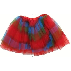 Category: Toys & Games Vendor: Fits girls ages 3 - 9 years Tutu measures 12" long Soft satin covered elastic waist, fits 17"-26" Rainbow colored top layer mat