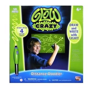 Product Description : GlowCrazy Distance Doodler draw and write with light! Glow-in-the-dark Distance Doodler will provide hours of fun, find a clean, flat wall and turn off the lights, it's time to glow. The Glow Crazy dual-action magic lightwand works from over 10 feet away, so you can have a long distance game of tic-tac-glow or draw your favorite animal. The reusable GlowCling won't harm your wall and the react to the lightwand with a wild glow.